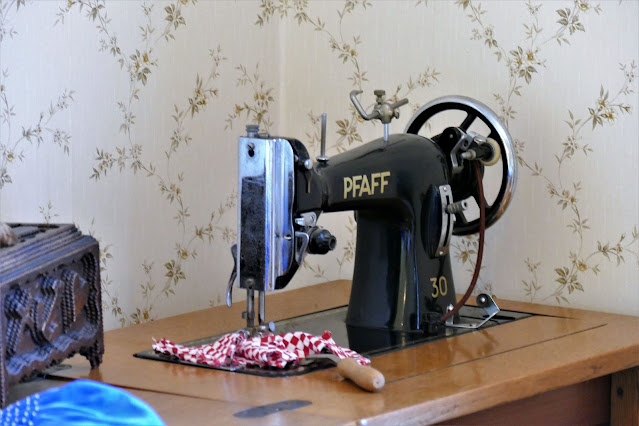 Een tijdje geleden kwam ik dit tafereeltje tegen in het openluchtmuseum. Kijk zo zat mijn moeder dagen achter de naaimachine toen zij haar zus en schoonzus een eigen bedrijfje waren gestart en ameskleding maakte. Wat een herinnering wat een nostalgie